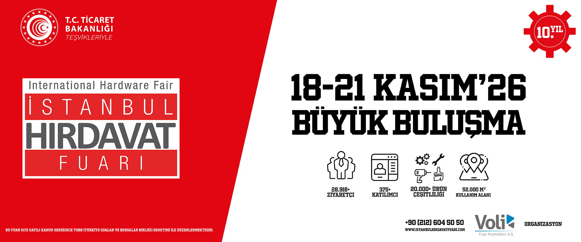 İhracatın ve üretimin kalbinin attığı İstanbul Hırdavat Fuarı, 19-22 Kasım 2025 tarihlerinde İstanbul Fuar Merkezi’nde!